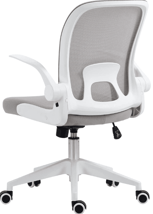 - Ahorro de espacio: diseño simple para los botones de respaldo plegables en ambos lados. Presiona para plegar el respaldo para ahorrar espacio. Una silla que se puede utilizar en una variedad. Utiliza el brazo giratorio que se ajusta perfectamente con un reposabrazos abatible. Sin golpear el escritorio y se puede almacenar debajo del escritorio, también se puede elevar o bajar fácilmente tirando de él hacia ti.