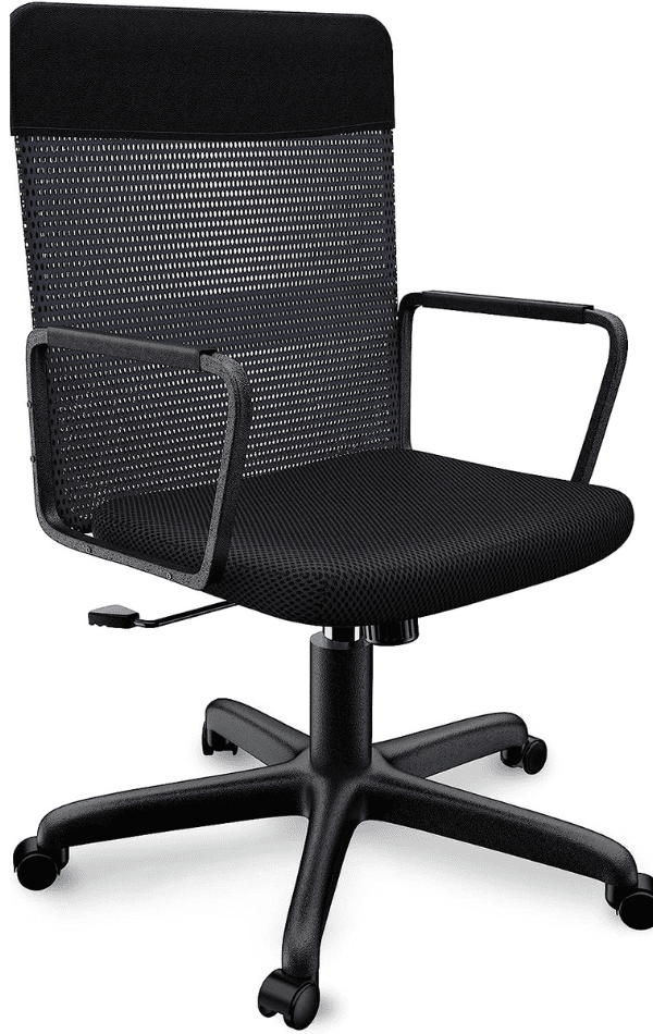 HLFURNIEU Silla de Oficina, Ajustable en Altura, Cómoda y Transpirable con Malla Ergonómica, Respaldo Mediano y Giro de 360°, Color Negro.