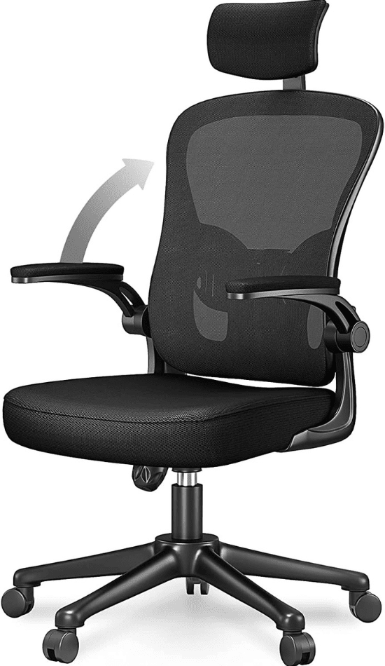 Silla de Escritorio Ergonómica con Reposacabezas Ajustable y Soporte Lumbar, Respaldo de Malla Transpirable, Reposabrazos Abatibles de 90°, Silla Giratoria de 360°