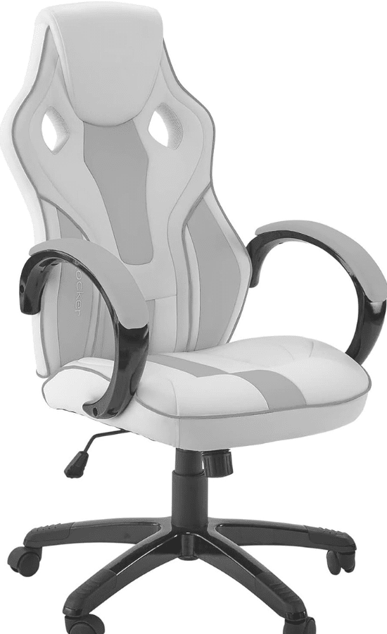 X Rocker Maverick Silla para Juegos, Silla de Oficina Ergonómica con Respaldo Medio para el Hogar, Cuero de Pu, Base Giratoria de Altura Ajustable con Soporte Lumbar Natural, Blanco y Gris
