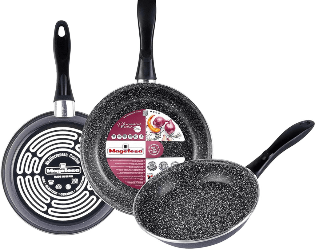 Lo más común es disponer en nuestra cocina de varias sartenes. Por eso en esta selección de la sartén más vendida verás varios juegos de sartenes de distintas medidas para cubrir nuestras necesidades. Sartenes pequeñas para hacer huevos fritos y comidas comunes y sartenes grandes para cuando son varios a la hora de comer.